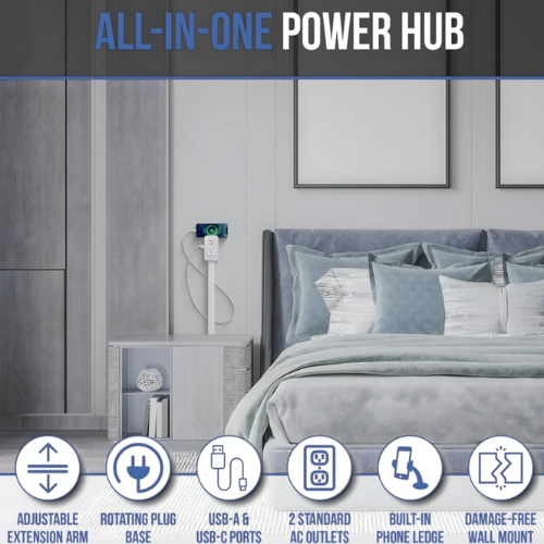 The Modo Outlet Extender rotates and adjusts to fit any space. With dual AC outlets, fast USB-A and USB-C ports, and a built-in phone ledge, it transforms hard-to-reach outlets into a sleek, accessible power hub — safe, compact, and made for modern workspaces.